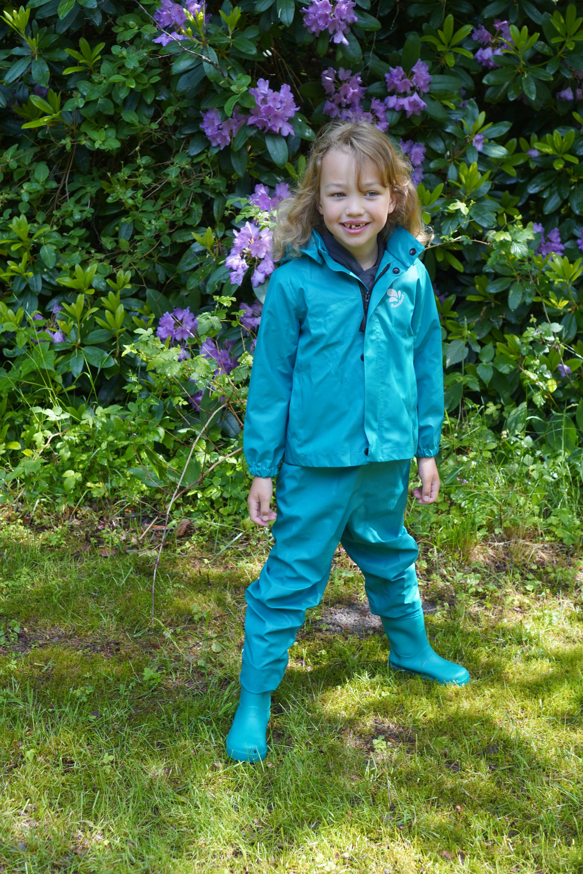 Regntøjet er fremstillet i Europa af et slidstærkt materiale, der både er vandtæt, let og behageligt at bevæge sig i. Produceret med fokus på kvalitet, så du kan være tryg, når dit barn leger ude – uanset vejret.